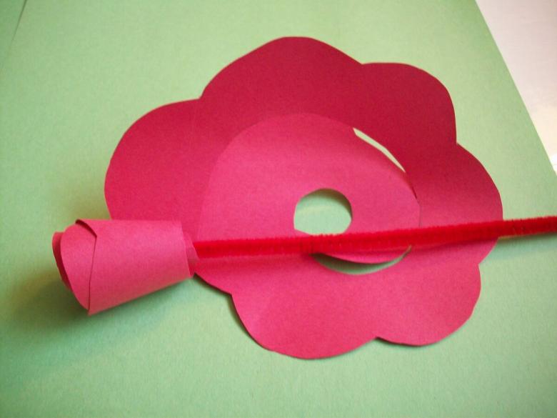 - Étape 5. Les feuilles sont découpées dans du papier vert et attachées à la tige de la fleur.