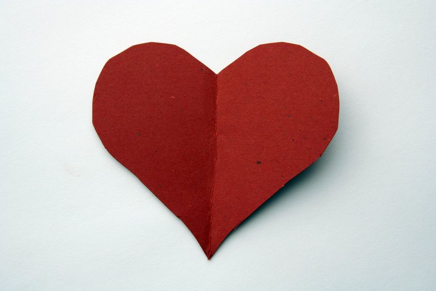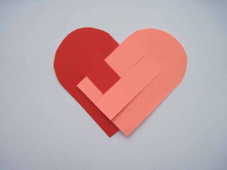 - Utilisez un gabarit pour découper deux cœurs identiques en papier rouge ou rose.