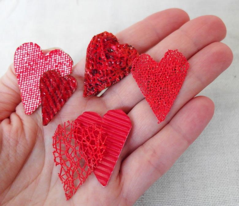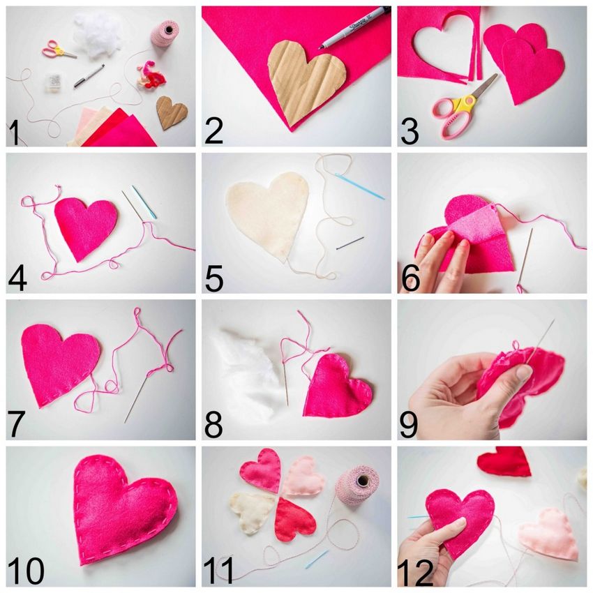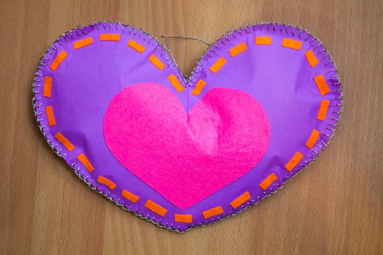 - Enfilez les cœurs ensemble pour former une petite poche.