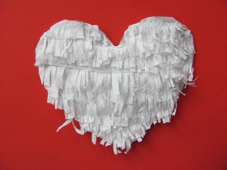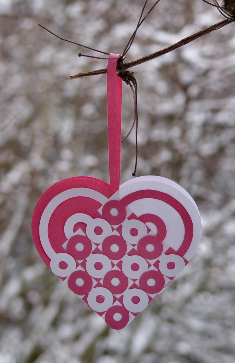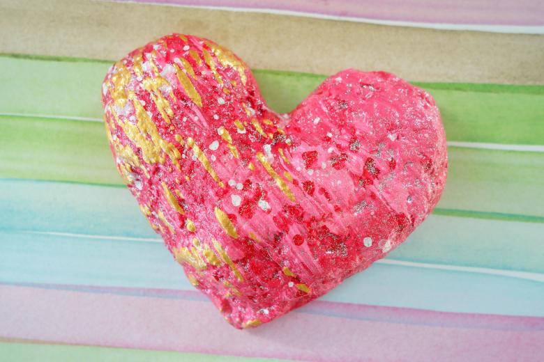 - Le long de la ligne de découpe, appliquez de la colle et fixez les bords pour donner au cœur un effet 3 D.