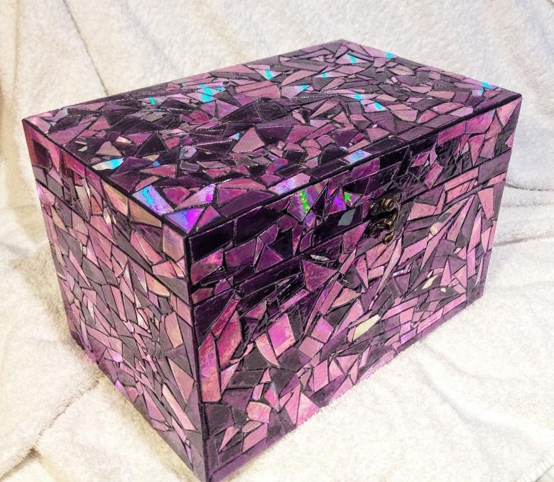 Les CD de différentes couleurs sont faciles à trouver. Coupez-les en morceaux de différentes tailles et utilisez de la colle thermofusible pour coller toute la surface de la boîte. Poncez les joints avec du mastic et, une fois sec, essuyez la surface avec un chiffon doux.