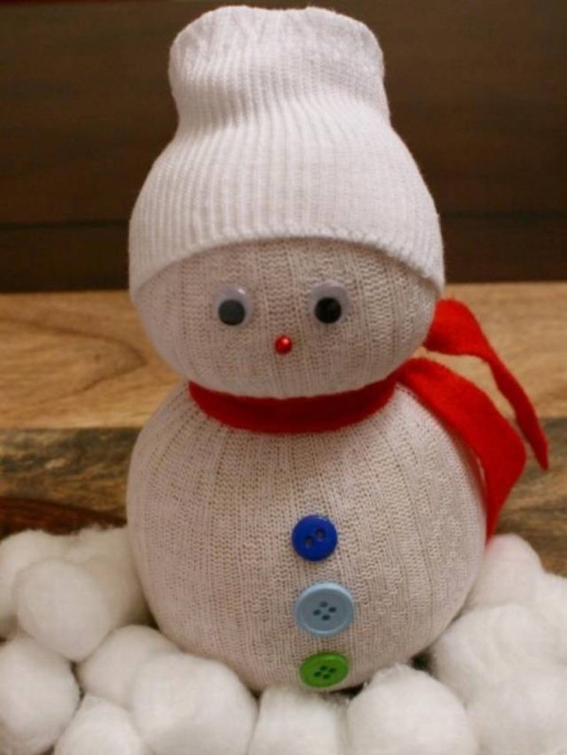 Un autre moyen facile de fabriquer un joli bonhomme de neige, qui peut être utilisé pour créer une ambiance festive à la maison et comme activité de spectacle pour la maternelle ou l'école. Même un enfant peut réaliser ce bonhomme de neige, car il n'est pas nécessaire d'utiliser une aiguille et du fil pour assembler la figurine.