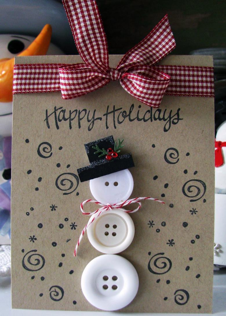 - Collez quelques boutons de couleur sur la poitrine du bonhomme de neige.