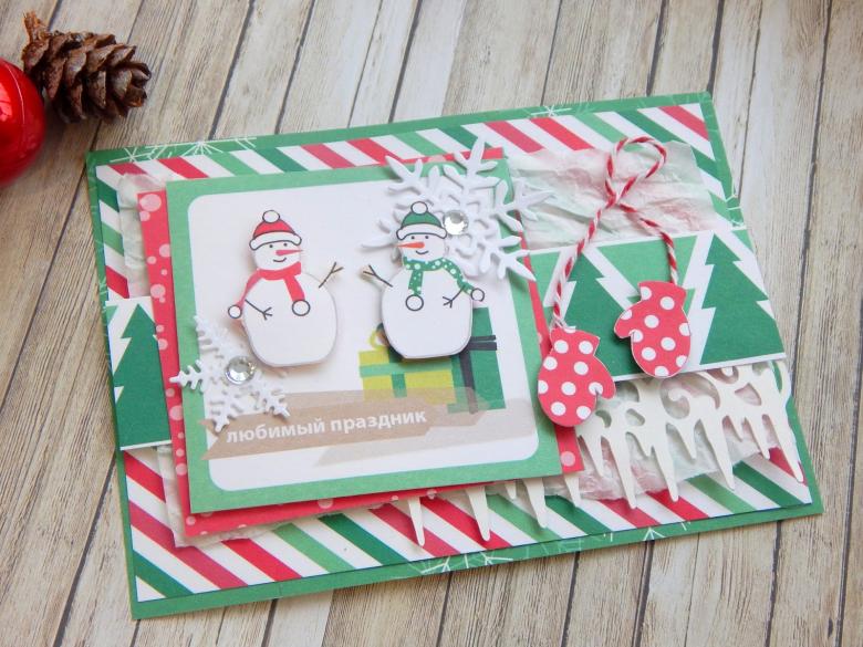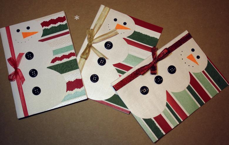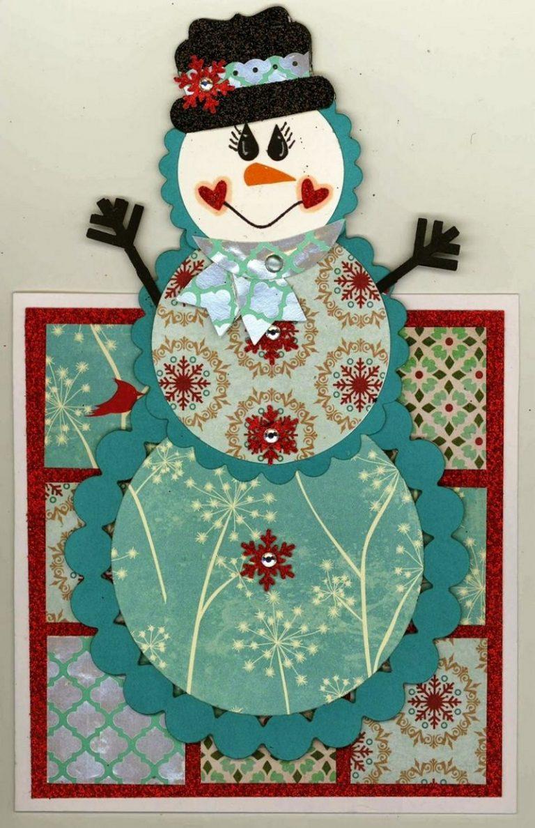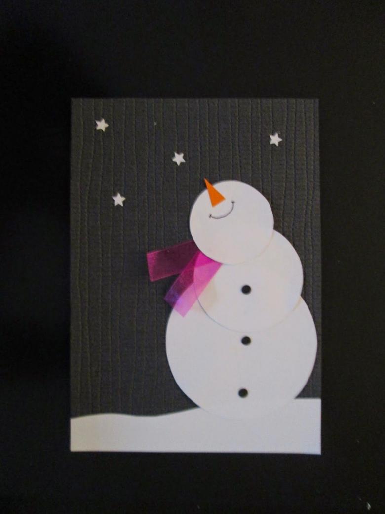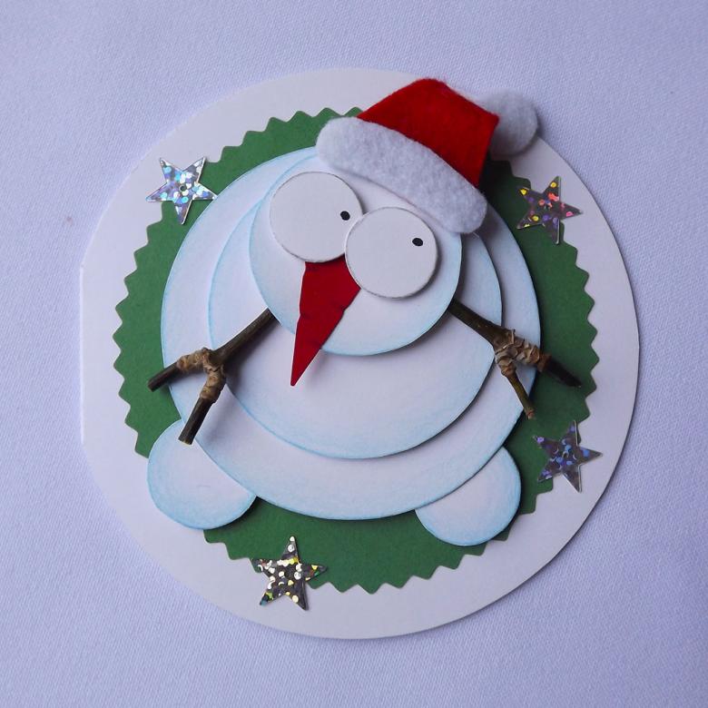 Décorez la carte terminée avec des paillettes et des petits flocons de neige, qui sont collés avec la colle Moment. Voici comment faire un bonhomme de neige en papier de vos propres mains en seulement une demi-heure.