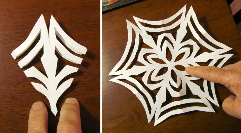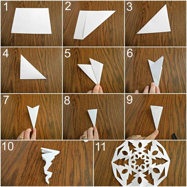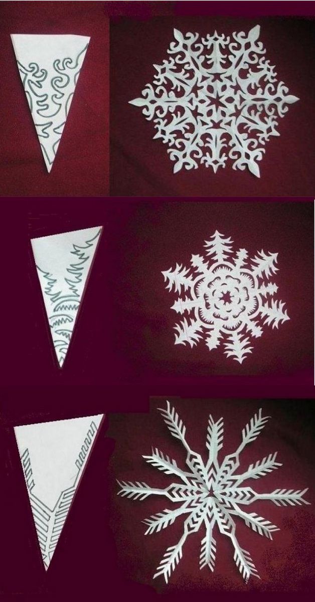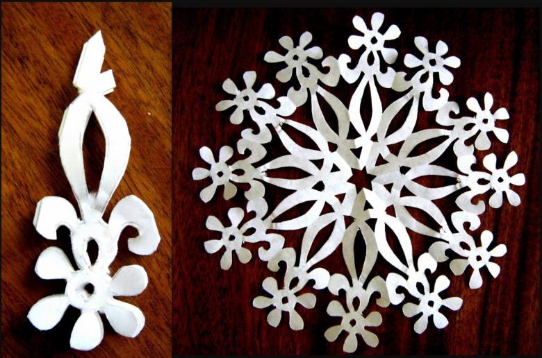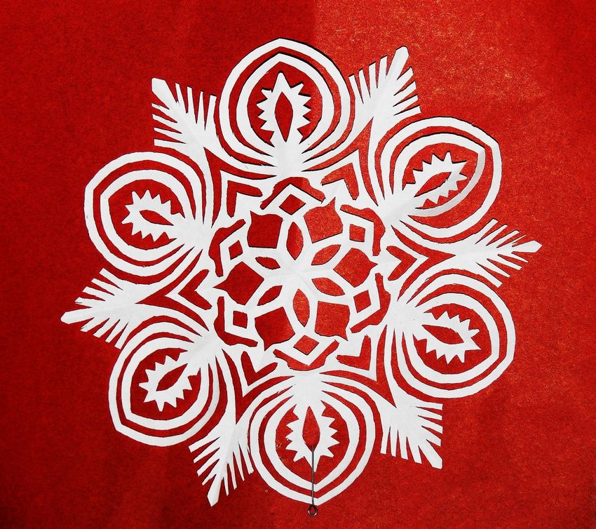 Une autre méthode simple consiste à plier une feuille carrée ou une serviette de table en triangle, puis à découper un motif fantaisie, à déplier la serviette et à obtenir un artisanat ajouré.