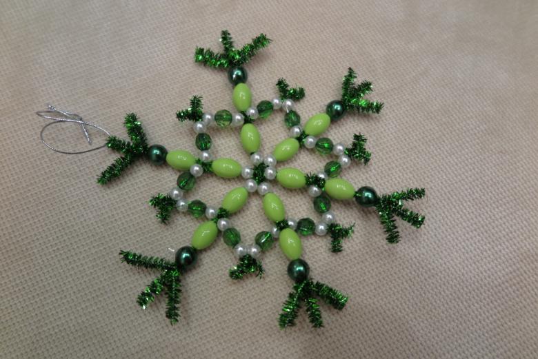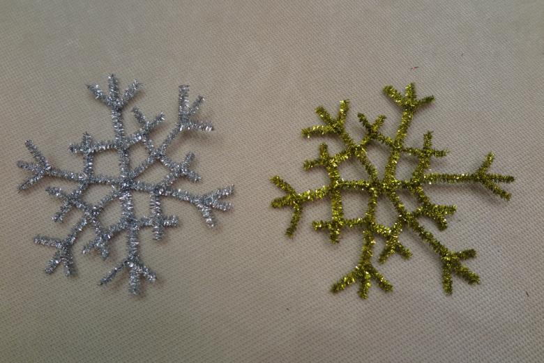 Le chenille ou le fil de fer pelucheux est considéré comme un bon matériau pour créer des flocons de neige fantaisie. Grâce à sa souplesse, le fil peut prendre n'importe quelle forme et les fibres duveteuses forment un flocon de neige tridimensionnel, ce qui permet de se passer de décorations supplémentaires.