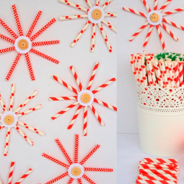 Les pailles à cocktail sont idéales pour fabriquer les "rayons" de l'artisanat. Vous pouvez utiliser du carton comme noyau. Pour ce faire, agrafez les pailles ensemble et formez deux cercles en papier ou en carton épais. Collez les cercles sur les deux côtés de la pièce.