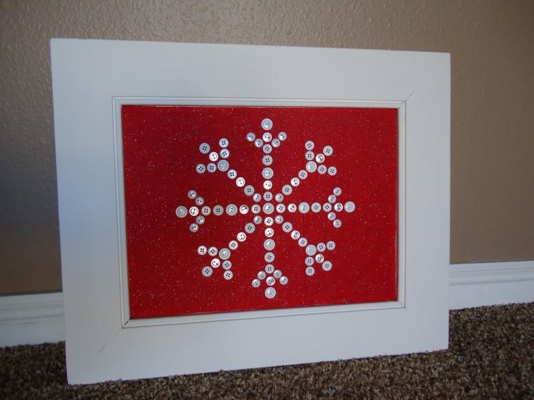 Un motif de flocon de neige peut être créé. Elle nécessite du contreplaqué, du tissu et des perles. Collez des perles de tissu et de colle sur du contreplaqué pour former un flocon de neige.