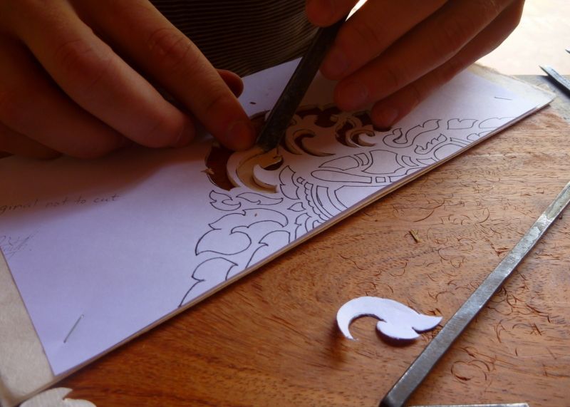 - les contours de la future image sont découpés le long des lignes clairement tracées, les éléments intérieurs sont soigneusement retirés et le pochoir peut être contrôlé.