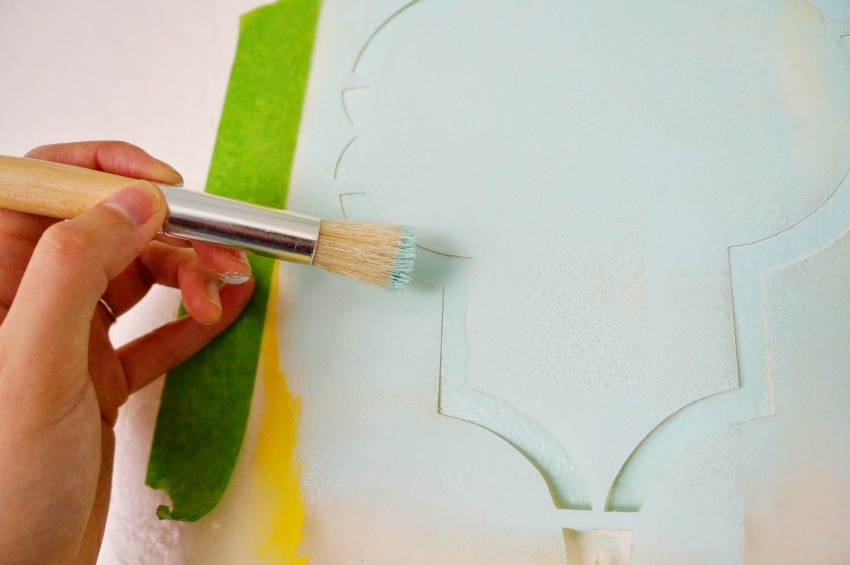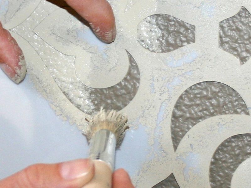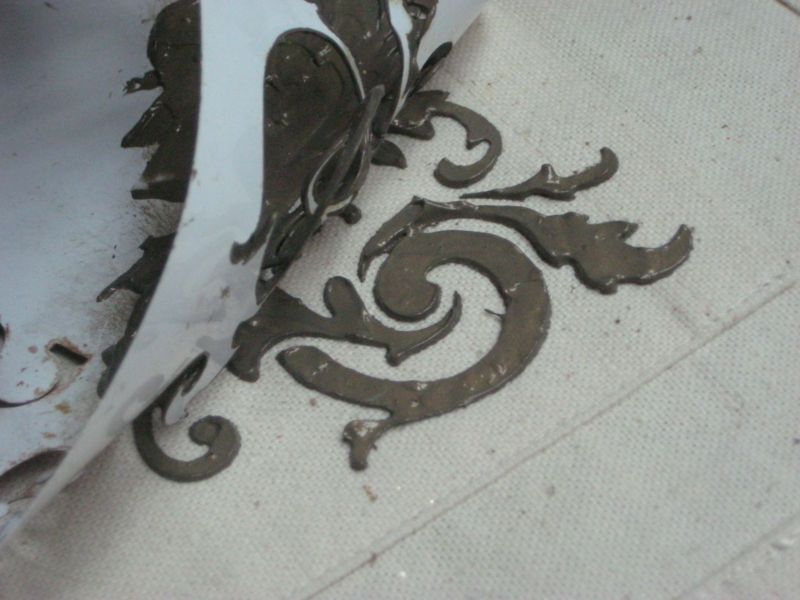 - le surplus de peinture peut être enlevé à l'aide d'une éponge, si le motif est stratifié répéter l'opération à partir de la première étape.
