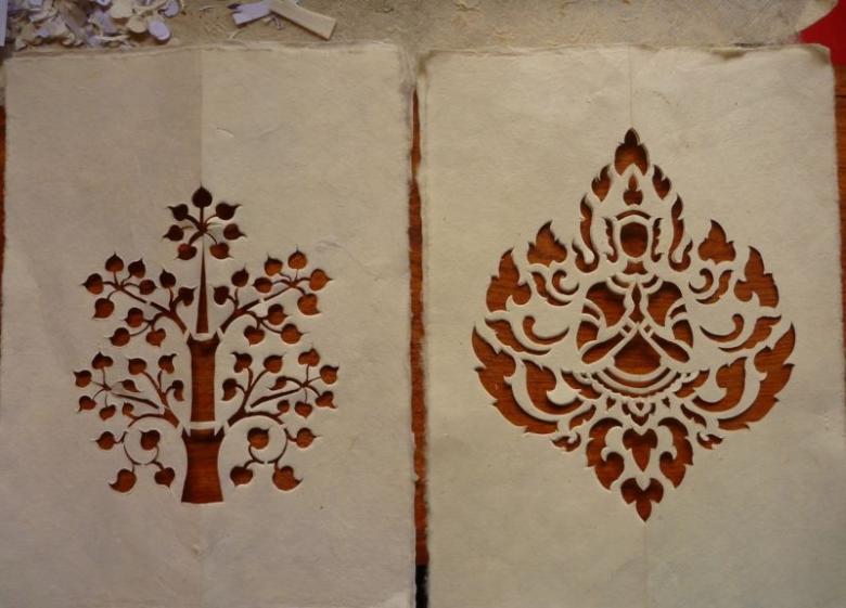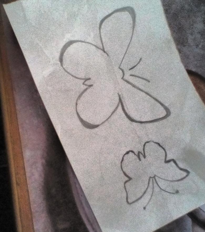 - Le motif, l'image ou le symbole que l'on souhaite utiliser pour décorer une surface particulière est dessiné sur du papier ordinaire ;