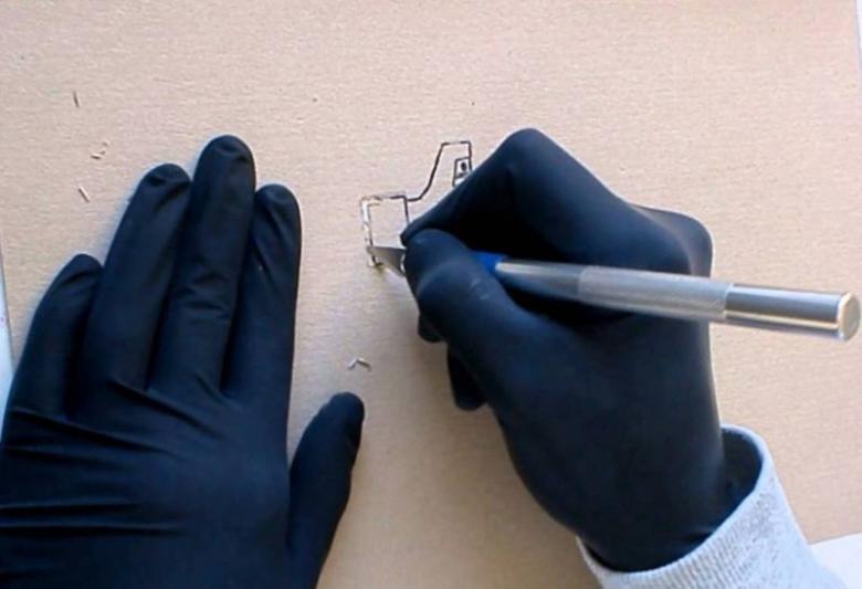 - le dessin et le contour sont transférés sur le substrat, tous les éléments sont retirés et, si nécessaire, des ponts sont dessinés entre les parties ;