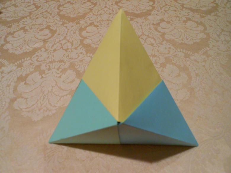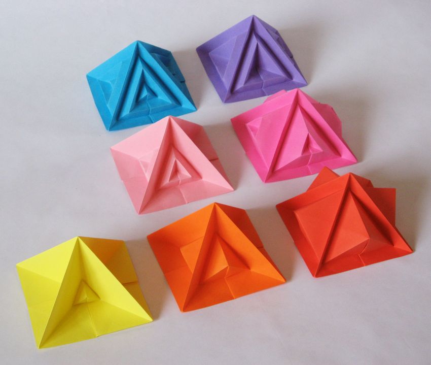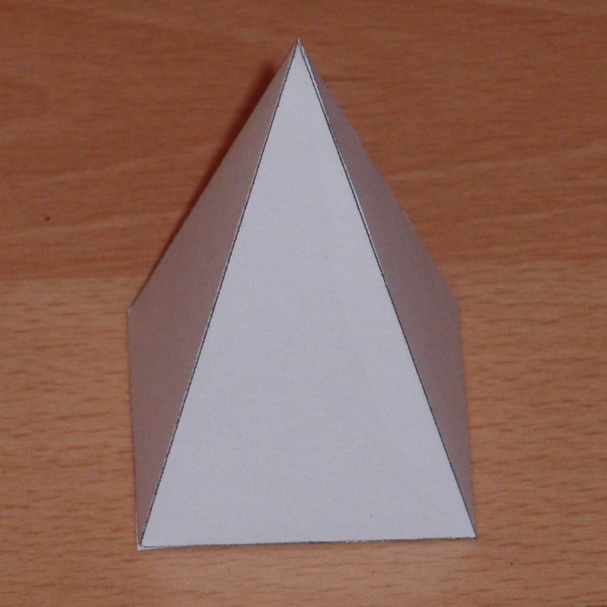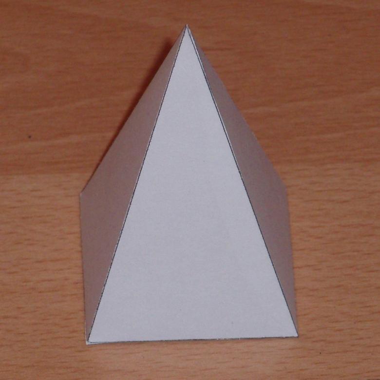 A la question de savoir comment faire un triangle tridimensionnel en papier, répondre très simplement. Pour ce faire, vous devez réaliser une pyramide dont les arêtes latérales sont des triangles. Au départ, pour une figure, vous devez faire un modèle :