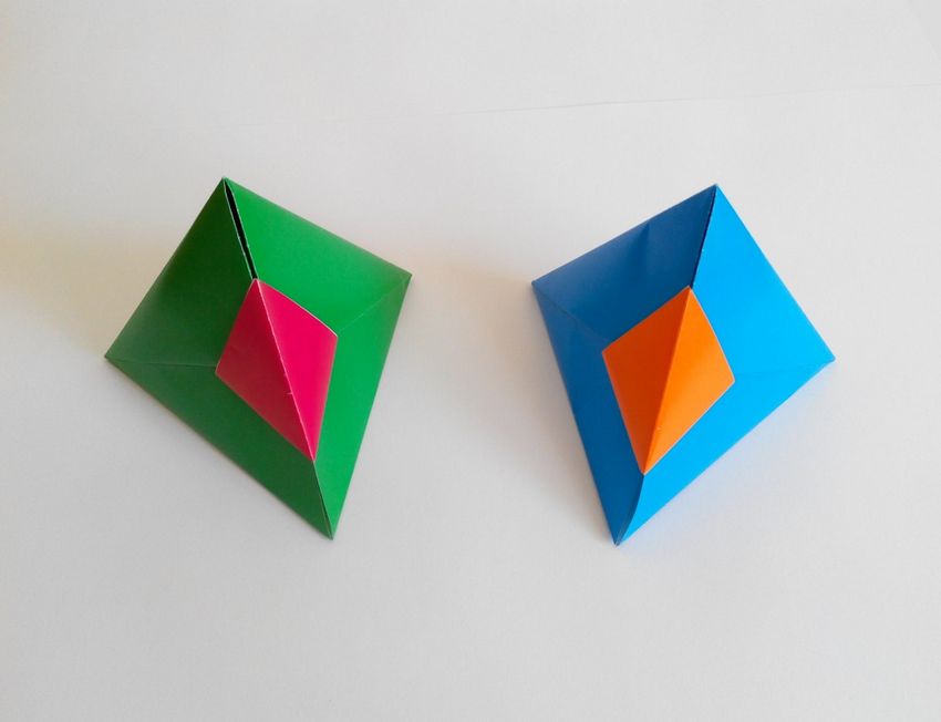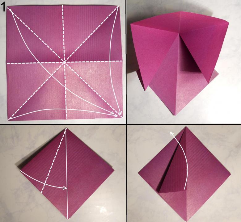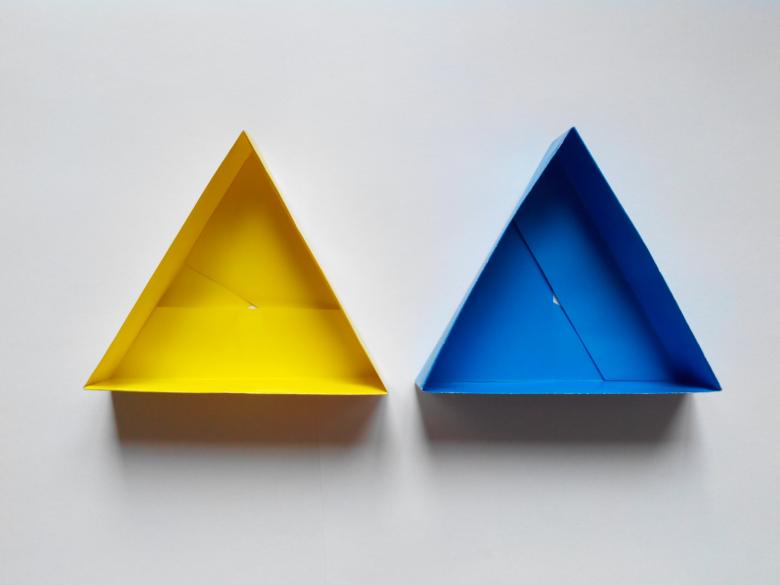 - 2 triangles latéraux doivent être concaves à l'intérieur, puis tourner la figure, une action similaire est répétée avec l'autre paire de triangles.