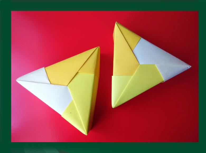 Dans l'art de l'origami, le triangle apparié est le dessin le plus simple :