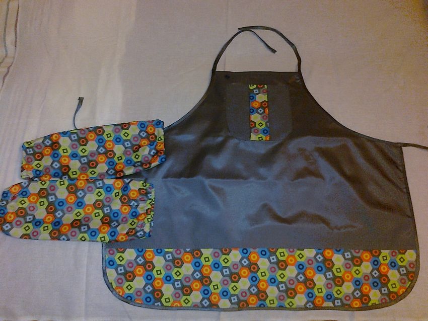 Coupe intéressante et originale d'un tablier raccourci avec plusieurs poches, parfait pour les amateurs de création. Un design similaire pourrait être adapté aux amateurs de grillades, car les différentes poches permettent de garder à portée de main tous les ustensiles de créativité et de cuisson.