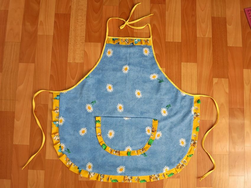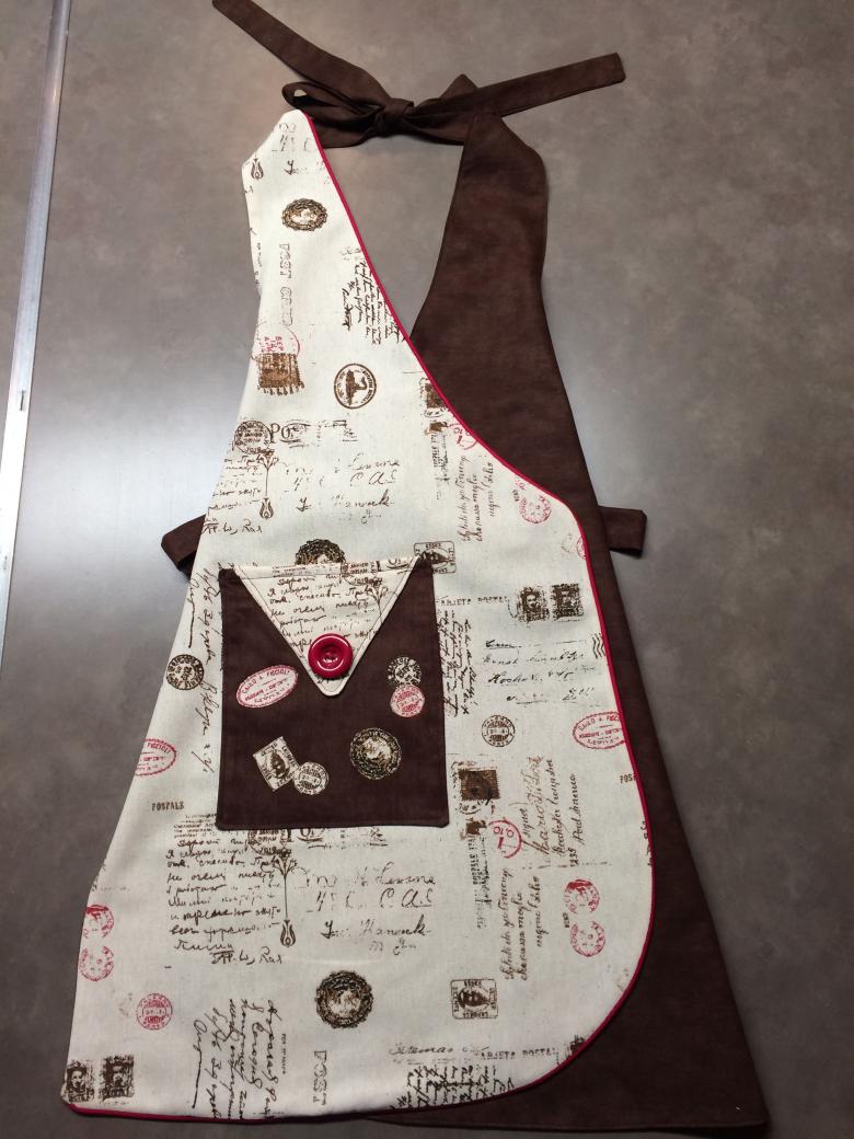 Après la découpe, tous les éléments sont soigneusement cousus ensemble et le tablier est prêt à être utilisé après lavage.