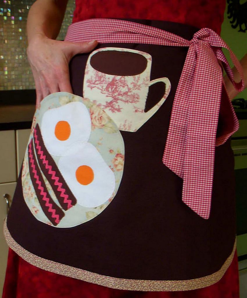 S'essayer à la couture d'accessoires utiles pour la maison est préférable avec un choix de modèles simples et peu compliqués, comme un tablier à la ceinture :
