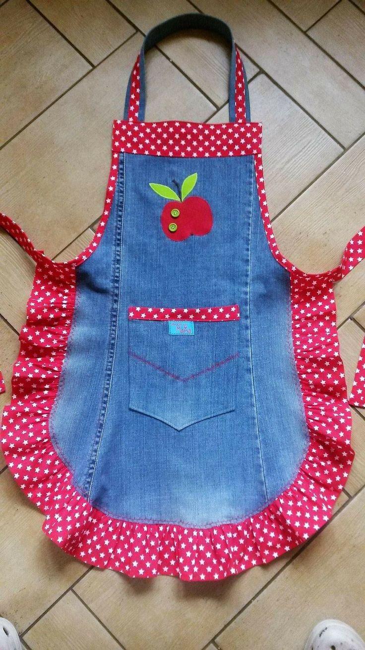 - Le denim, un textile robuste et lourd, est le plus souvent utilisé pour les tabliers et les tabliers pour les travaux de jardinage, mais pas pour la cuisine.