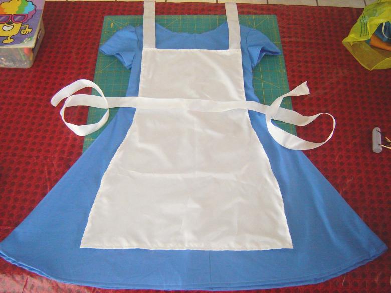 - Le rectangle est la future ceinture et le carré est nécessaire pour coudre le tablier ;