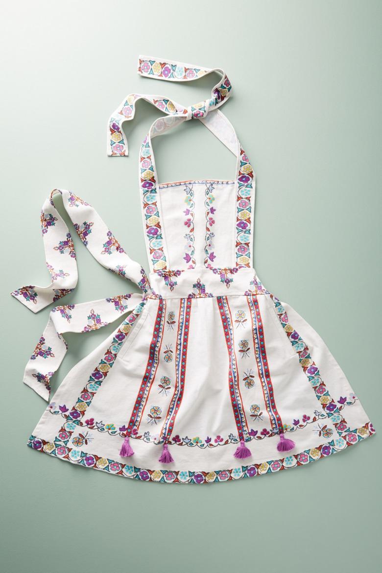 Vous pouvez facilement développer votre propre idée à partir des formes de base du tablier, en y ajoutant des décorations ou des bijoux intéressants, transformant ainsi un tablier impersonnel en une œuvre d'art. Les éléments décoratifs sont cousus principalement pour la décoration du produit fini et n'affectent pas sa fonctionnalité, contrairement aux poches et aux sangles.