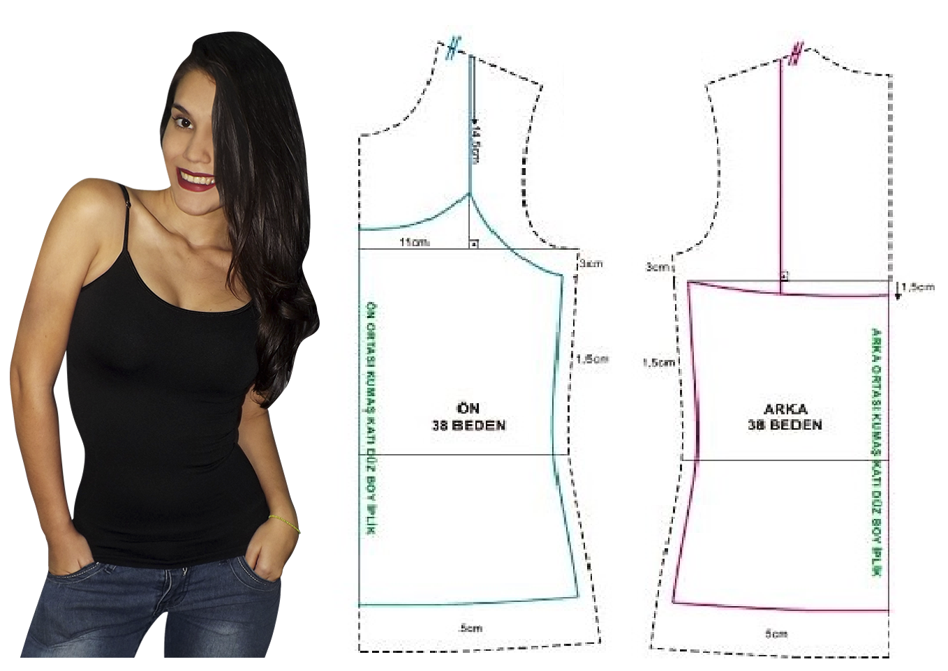 - Ajoutez ensuite 1,5 cm de chaque côté de la moitié avant, de la moitié arrière et de la moitié manche. Ce sera le surplus de couture ;