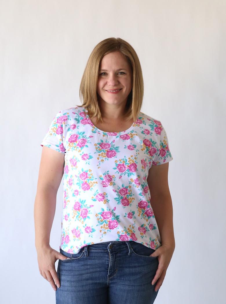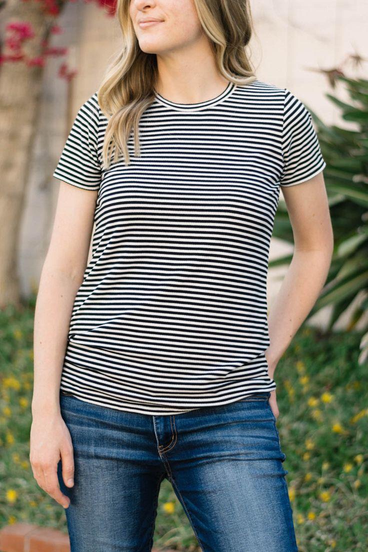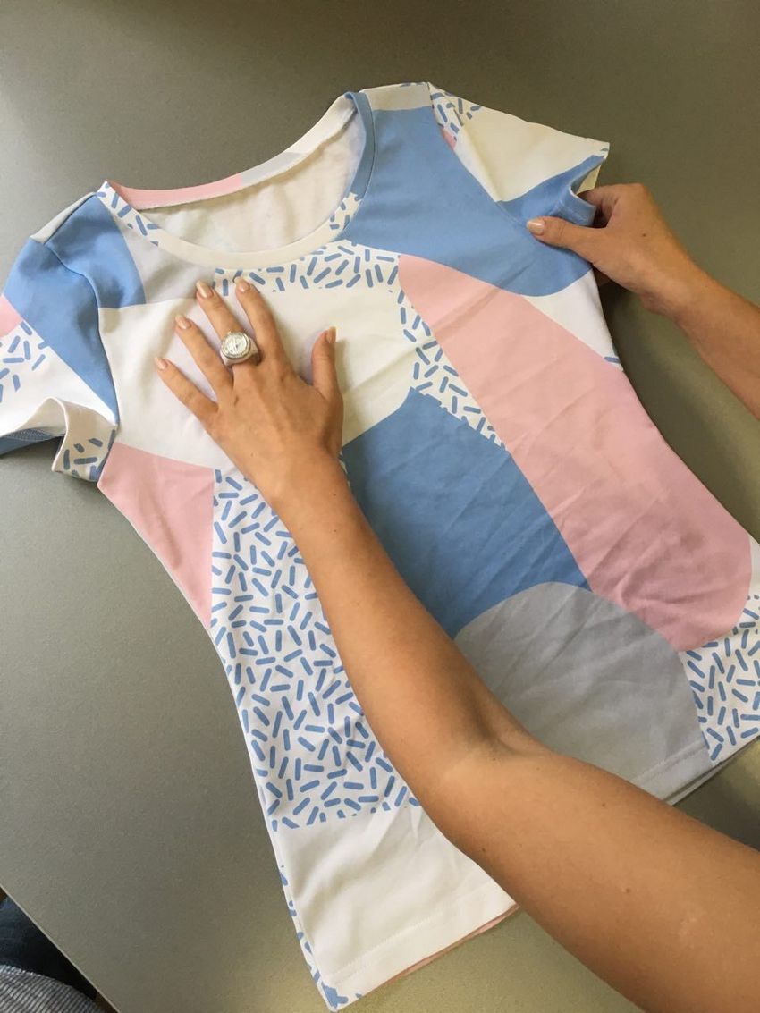 Pratiquement tous les T-shirts fabriqués en magasin sont en tissu tricoté. Ce tissu est facile à couper, ne s'étire pas, est doux au toucher, respirant et facile à entretenir. C'est un bon point de départ.