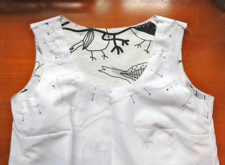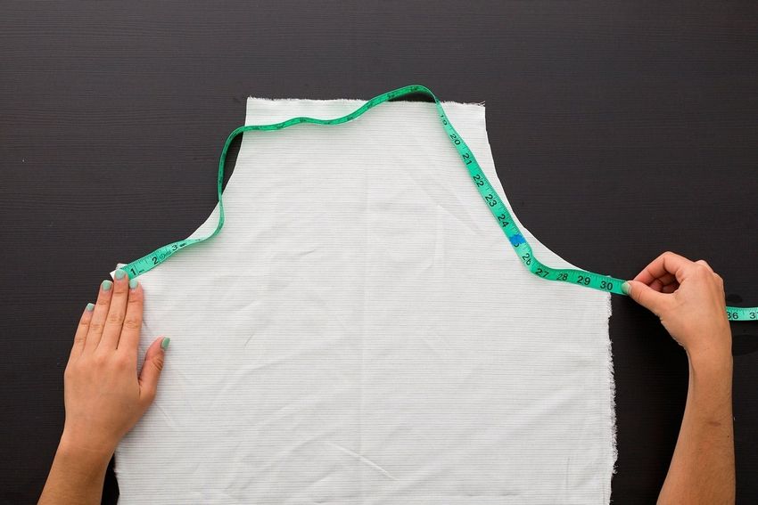 - Découpez l'encolure avec un élastique ou un biais ;