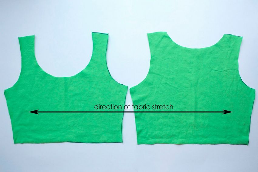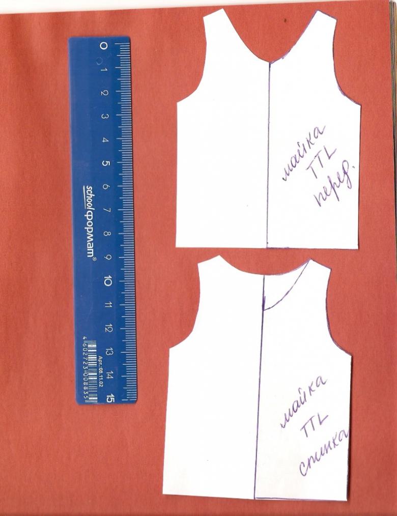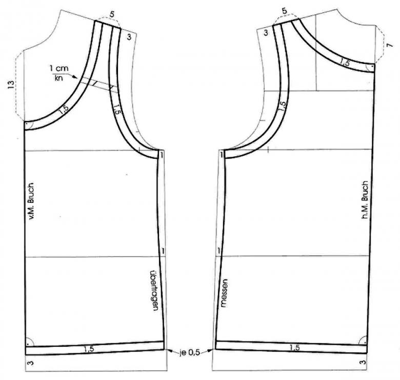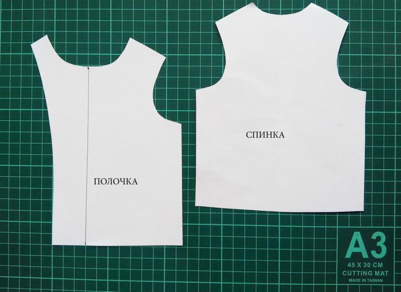 Si vous utilisez un patron prêt à l'emploi, il suffit de le transférer sur le tissu comme décrit ci-dessus. Si vous le construisez vous-même, ajoutez 5-6 cm à la couture de l'épaule du maillot de sport et joignez-les avec une ligne lisse. Ensuite, faites ce qui suit :