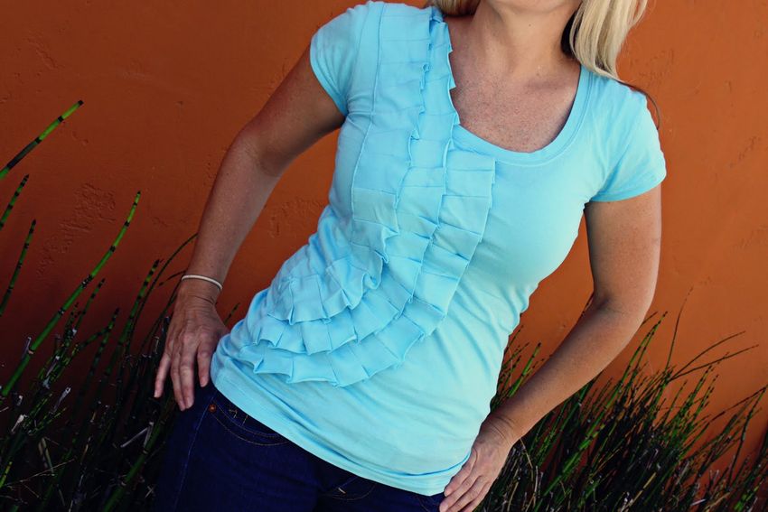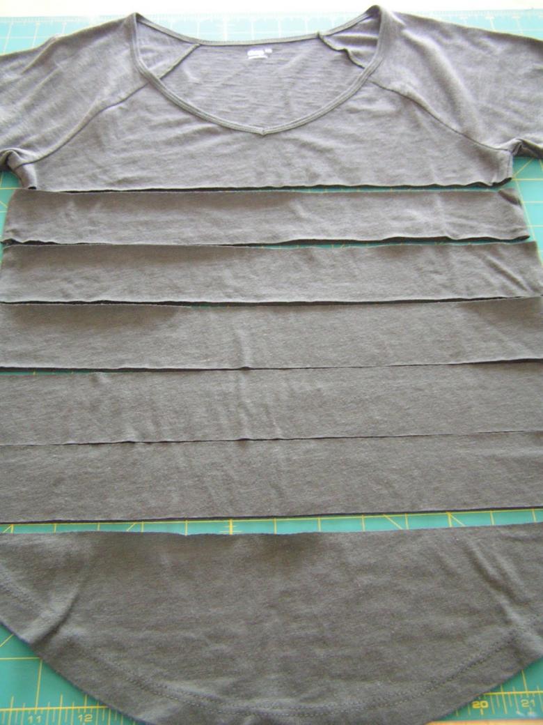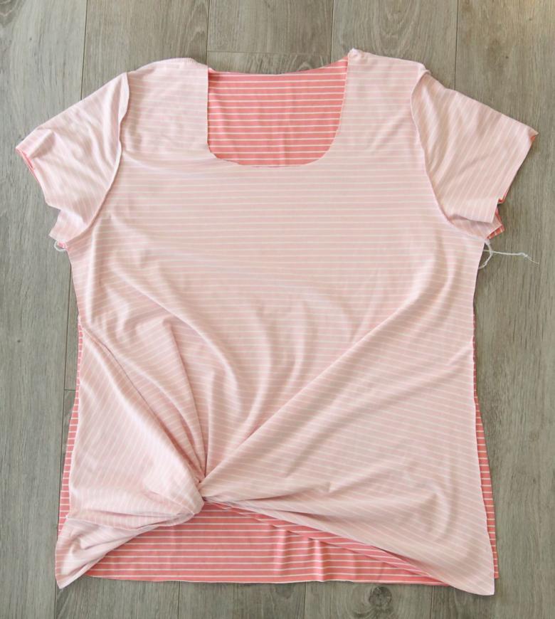 - Rentrez le bord inférieur du t-shirt et cousez.