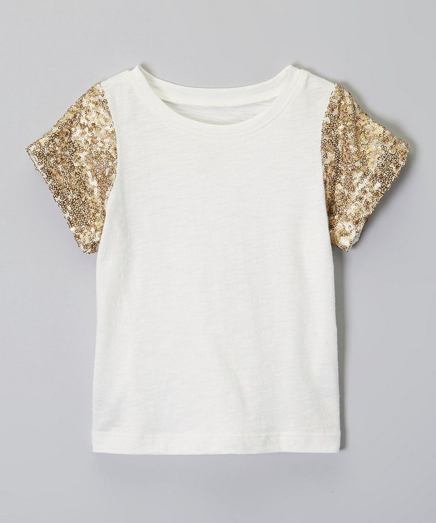 - Des appliques colorées, des perles et des détails fluorescents sont placés sur les T-shirts et les T-shirts pour enfants.
