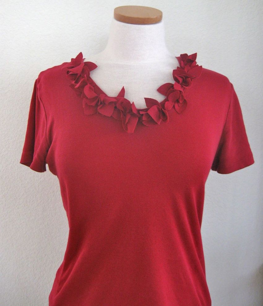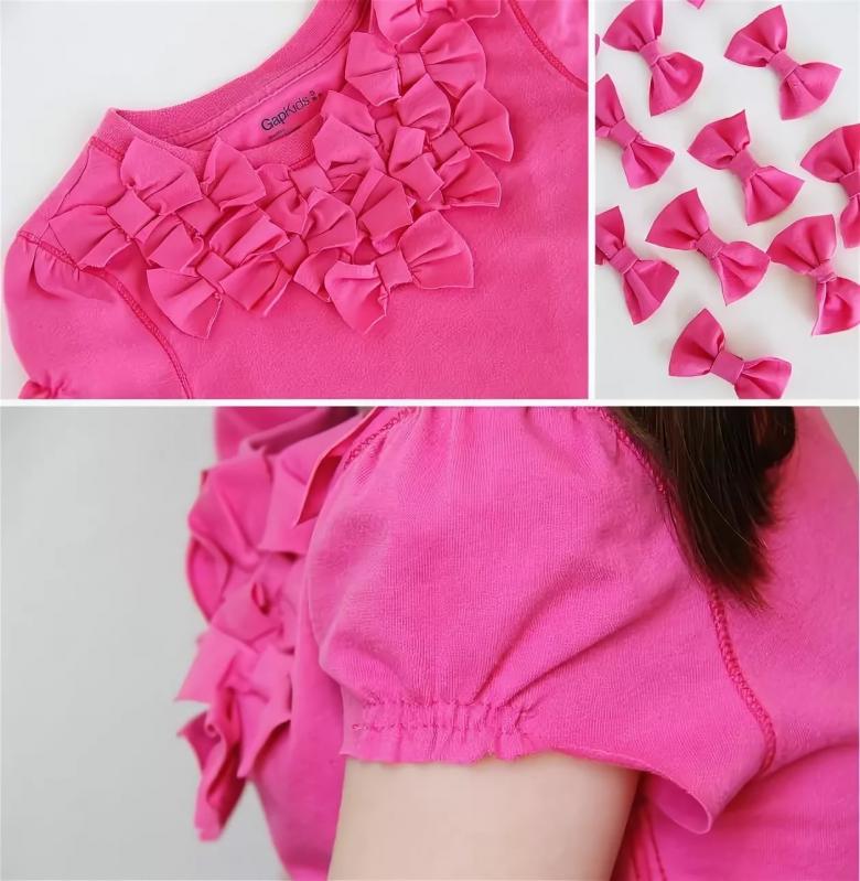 - Pour les T-shirts pour femmes, on utilise des rubans, des strass, des perles, des appliques, des découpes et des imitations de ceux-ci ;