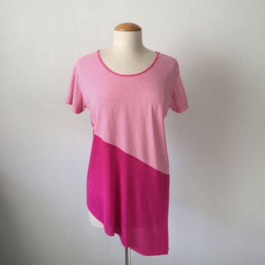 - Cousez le bord inférieur du t-shirt avec un point de surjet ou un point zigzag ;
