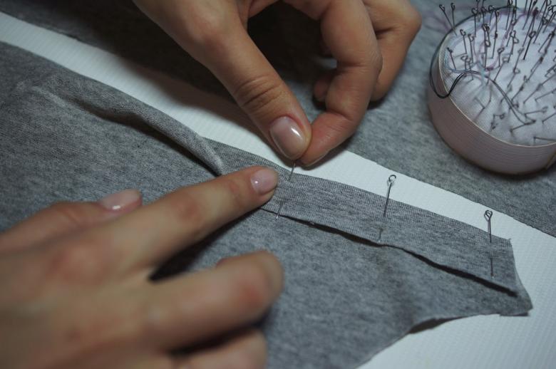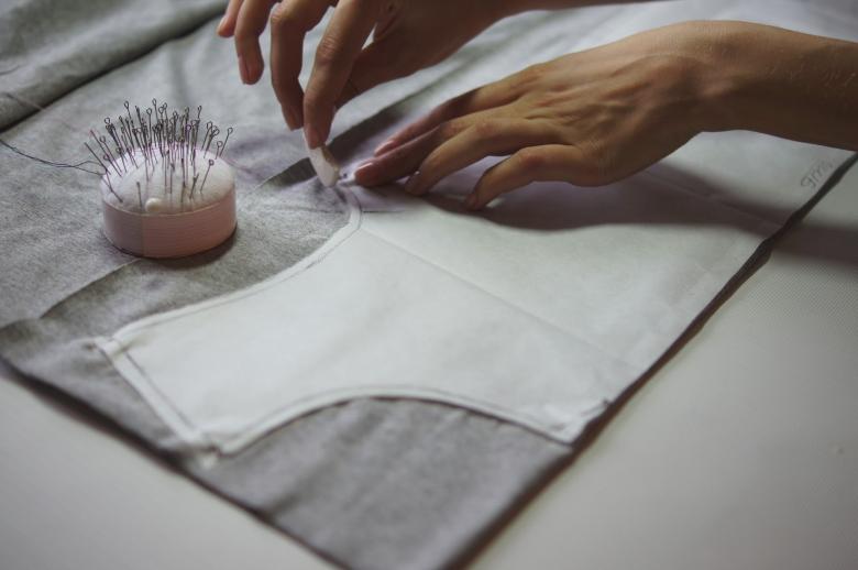 - Épinglez le t-shirt sur le support en carton avec des aiguilles à coudre en suivant le contour ;