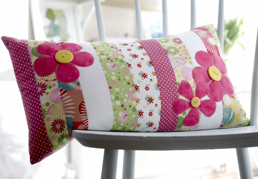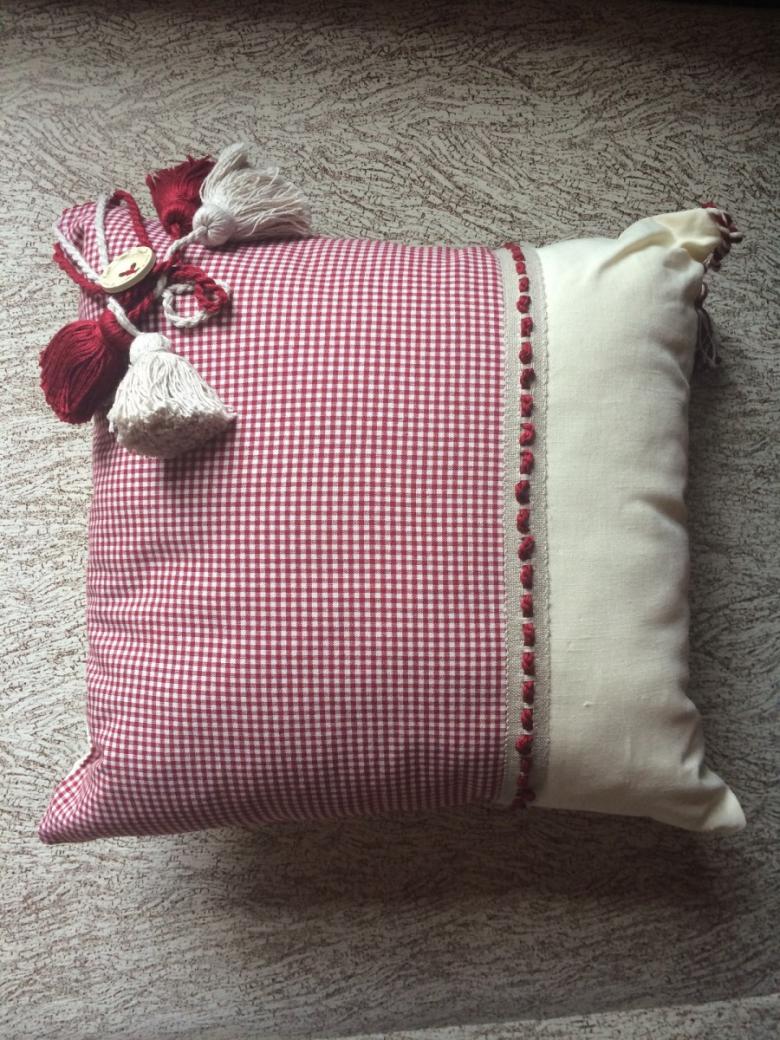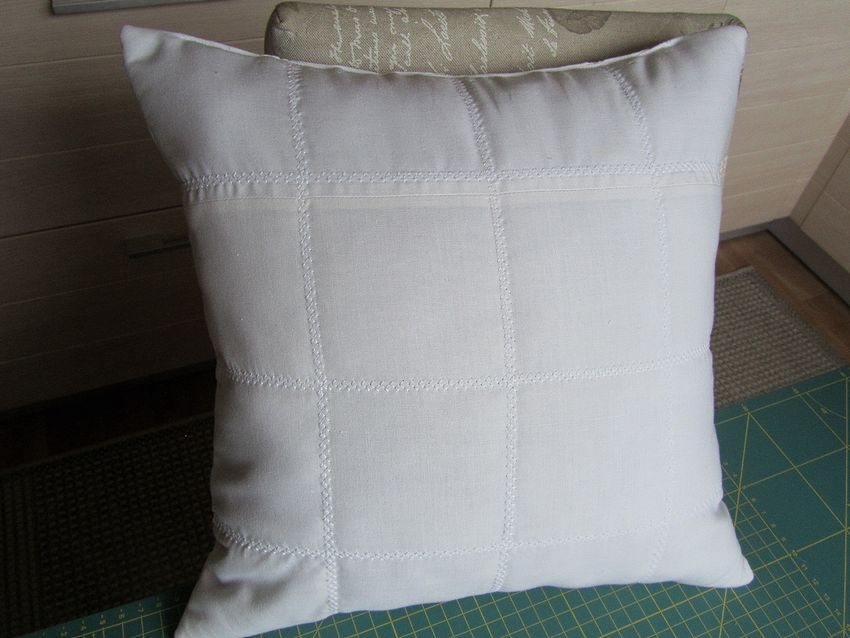 Le coussin est prêt, il suffit de le retourner sur l'endroit, de redresser les coins et les coutures et de le repasser. Si vous le souhaitez - vous pouvez coudre un ruban de satin étroit sur le rabat et sur la housse du coussin - les mêmes boucles de recouvrement : ainsi, il ne s'enroulera pas et le coussin sera décoré d'un nœud.