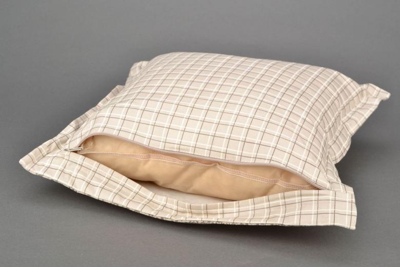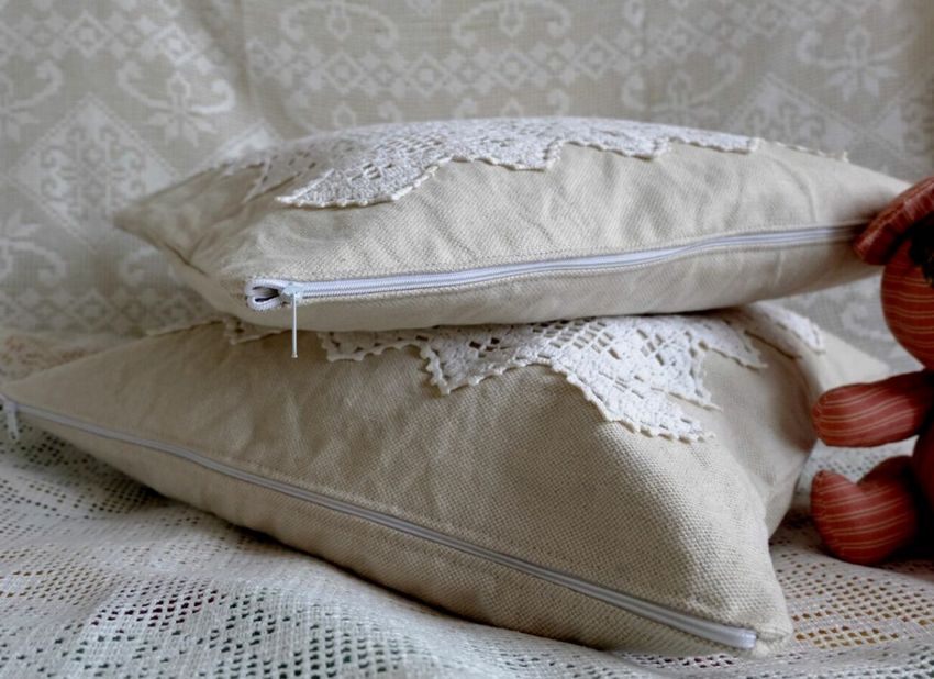 Les designers recommandent de placer les coussins à rembourrage souple dans des taies d'oreiller en tissu fin, de manière à ce que le repos soit confortable - ils épouseront facilement la forme de la tête et du cou, et les coussins à rembourrage dur - dans des taies en tissu épais. Exemples : le satin convient à un coussin orthopédique en fibre de bambou, le chintz à un coussin rembourré de plumes et de duvet.