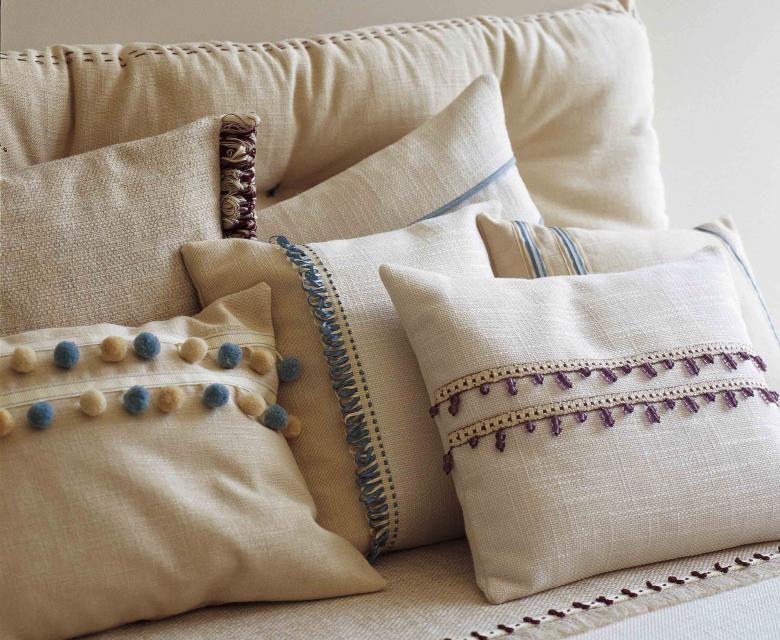 - le lin - a un effet "rafraîchissant", bon pour les coussins décoratifs d'un canapé d'été à la maison de campagne, sur lequel il est agréable de faire la sieste pendant la journée en pleine chaleur, mais très froissé ;