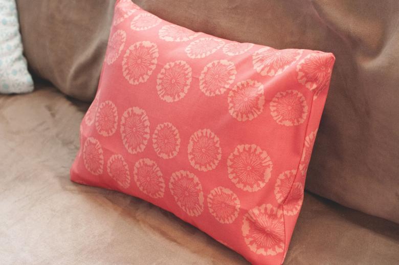 Il est conseillé de coudre à partir d'un tissu pré-mouillé et séché pour tenir compte du rétrécissement, ou de fabriquer une housse de coussin légèrement plus grande que le coussin. La couture d'une seule pièce ne prendra pas plus de deux heures entre le début de la découpe et le moment où elle peut être utilisée.