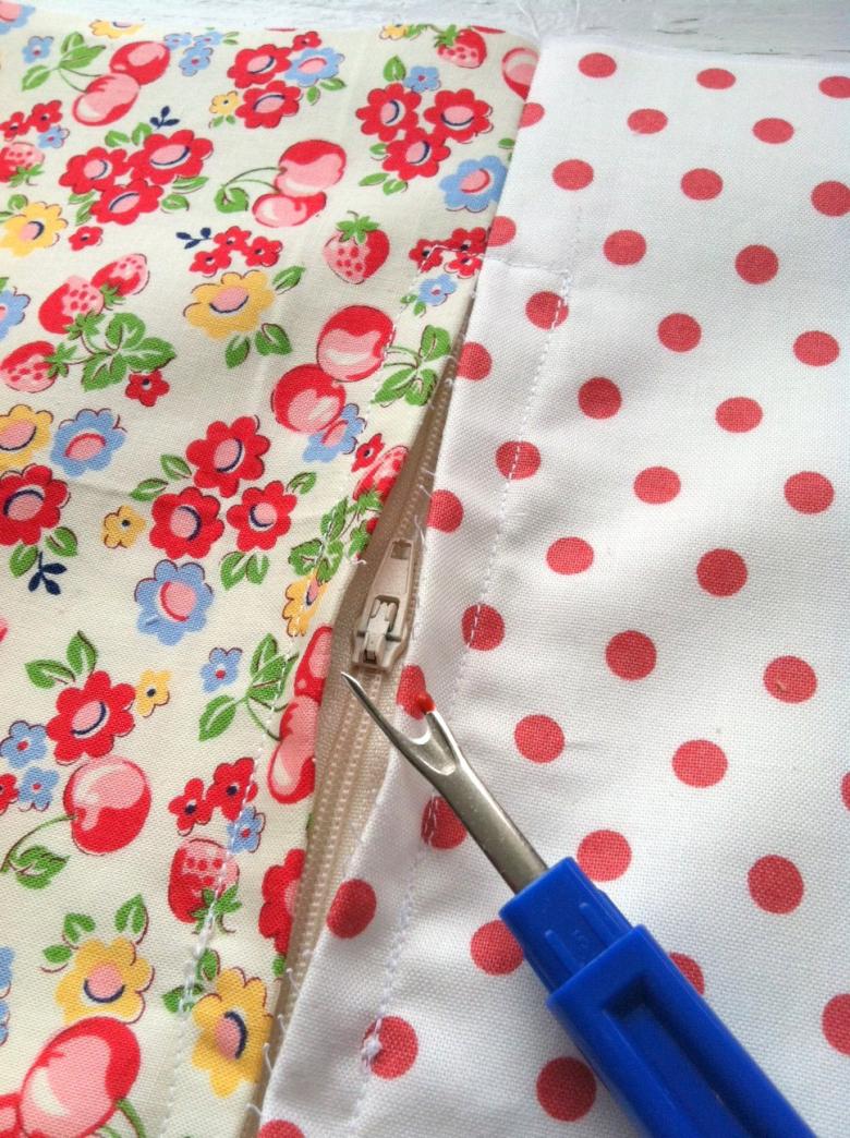 - Cousez la fermeture à glissière avec un point normal ou le pied de couture spécial, en laissant une distance de 2-2,5 cm du bord de la fermeture ;