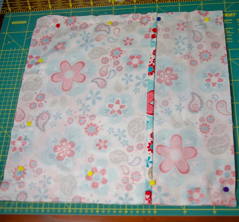 - Assemblez les deux parties, l'endroit vers l'extérieur et l'envers vers l'intérieur, en les alignant de manière à ce qu'une partie dépasse le bord de l'autre de la longueur du rabat, puis fixez-les avec des épingles.
