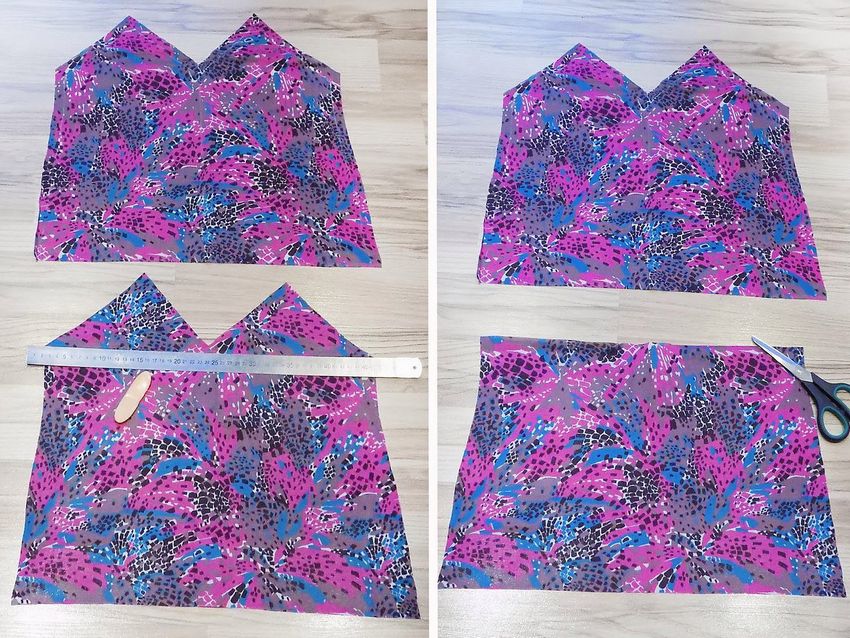 - Selon les patrons préparés à l'avance, découpez les pièces à assembler : une pièce du devant, deux pièces du dos, des manches (si nécessaire), des pièces du bas.