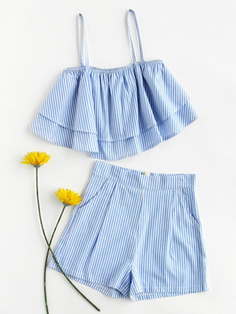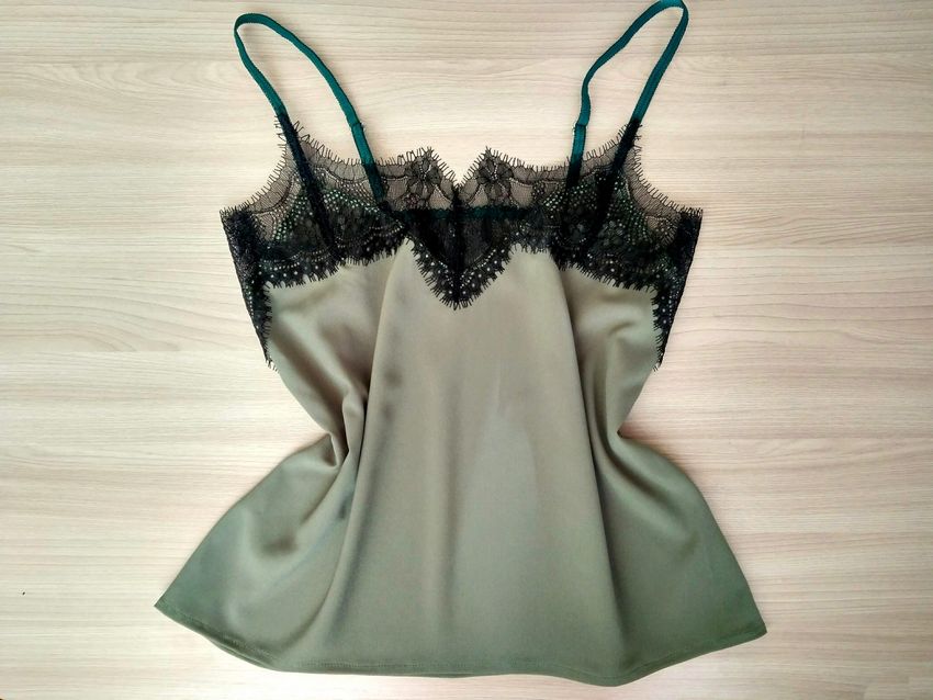 - Les bretelles sont cousues pour un débardeur ou un top léger, l'ourlet et l'encolure à œillets sont rentrés. De plus, un grand point de couture à la main est cousu.