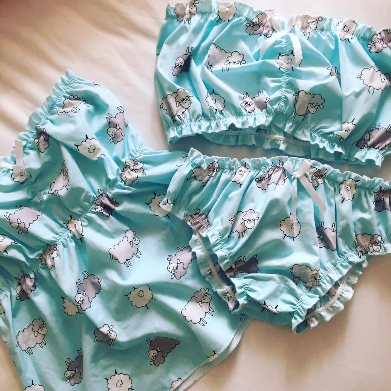 - Après avoir assemblé la partie inférieure (jambes de pantalon, short, culotte), le contour supérieur est cousu en laissant un petit canal à l'intérieur. Dans ce canal passe un élastique ou une ficelle qui vous permet de maintenir le pantalon de pyjama sur vos hanches.