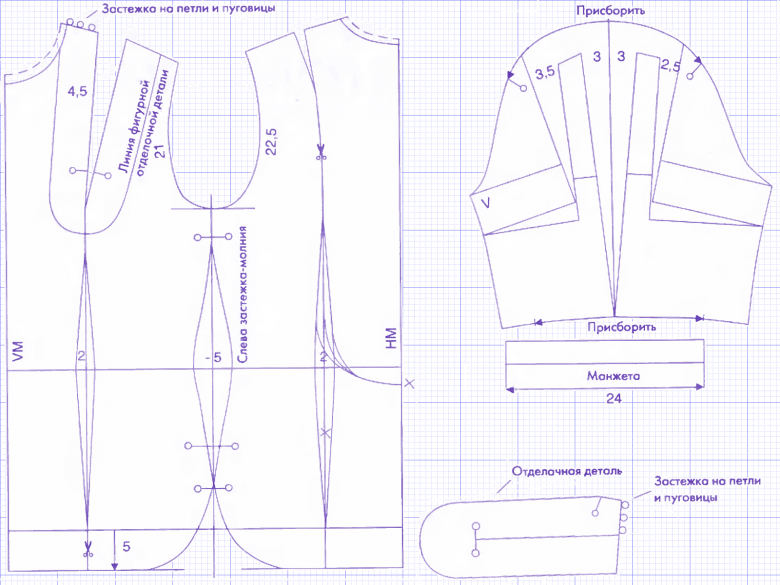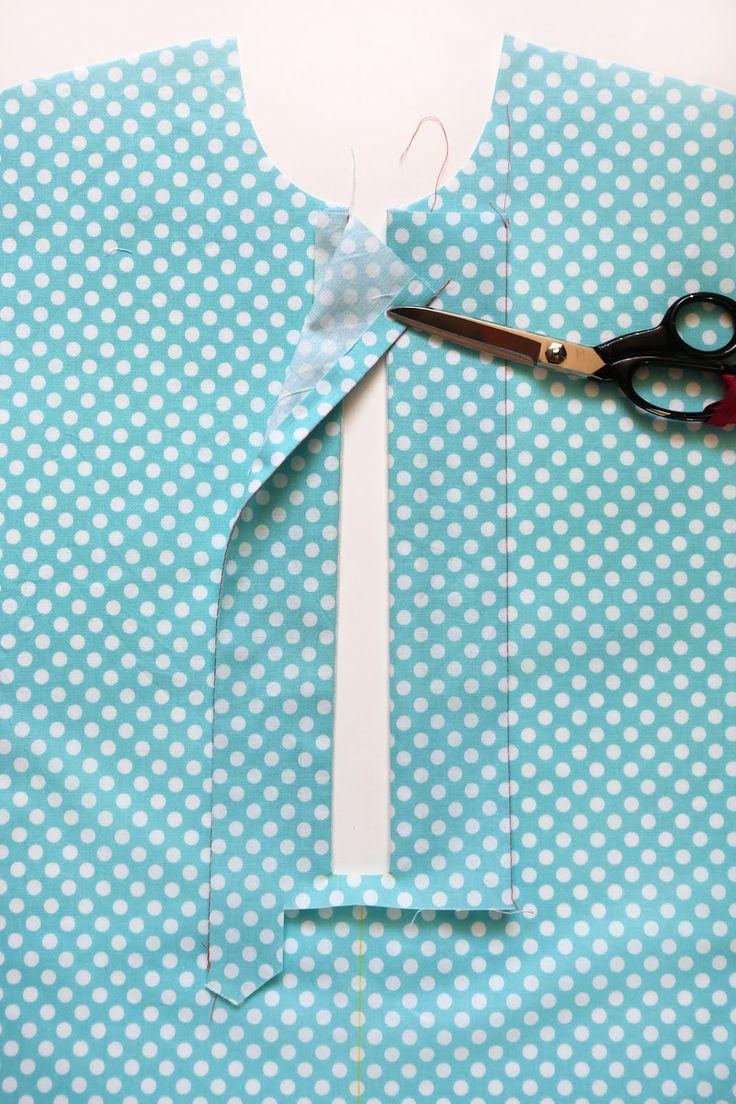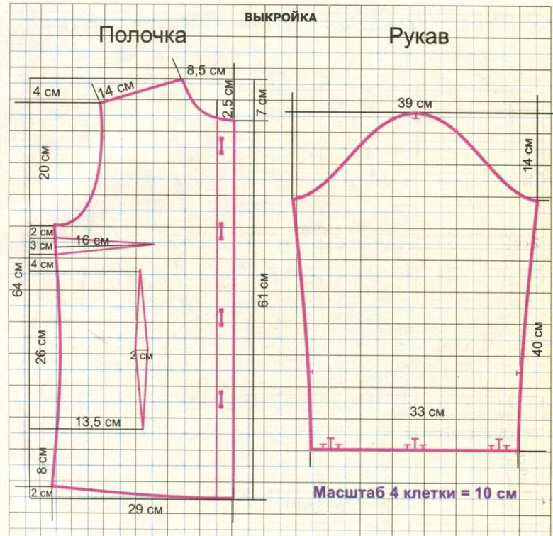 Coupez d'abord les manches et le col. L'encolure peut être conçue dans la forme que vous souhaitez. Sur la poitrine, vous pouvez ajouter des pinces ou laisser une silhouette ample.