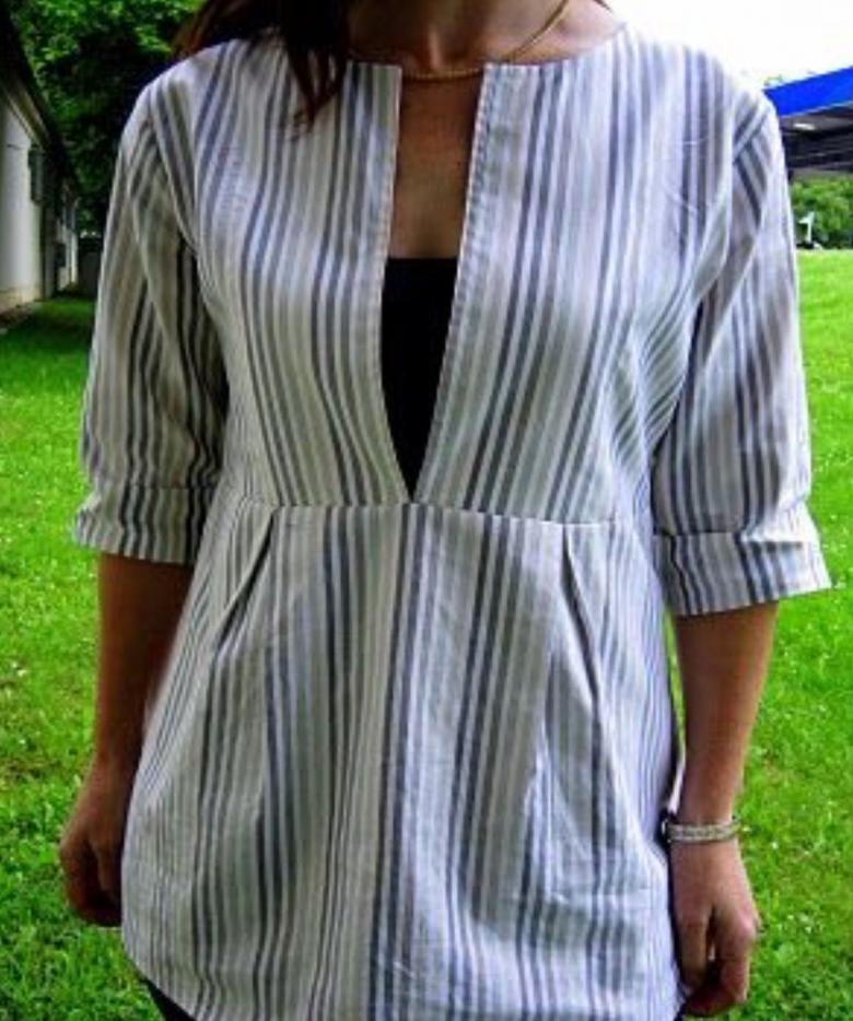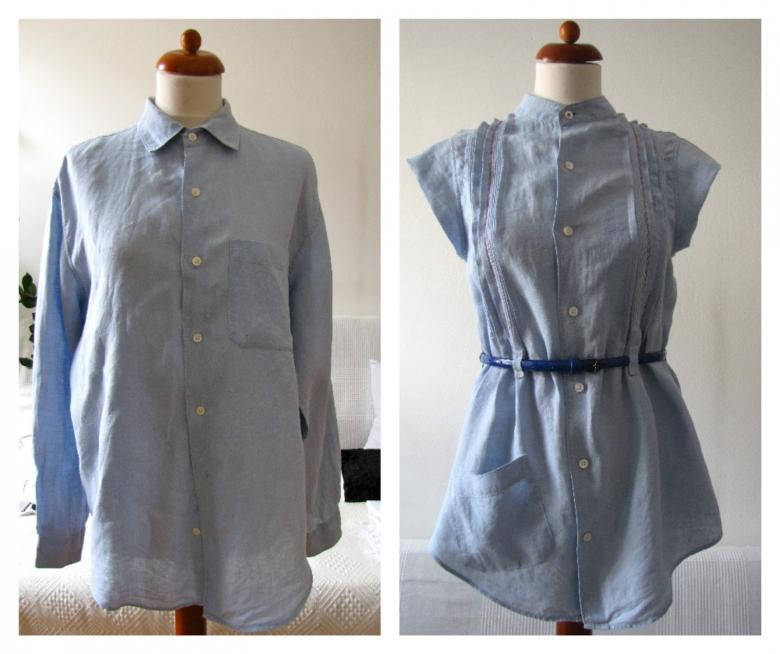 Non seulement vous pouvez faire une robe avec une vieille chemise droite, mais vous pouvez aussi, par exemple, la transformer en camisole ;