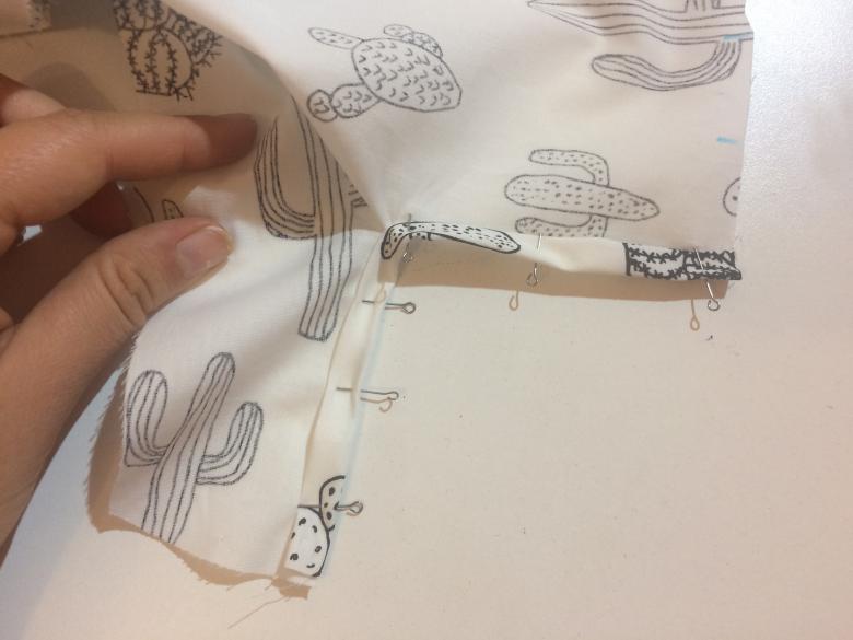 - Avant de coudre la patte de boutonnage sur la chemise, repassez-la sur l'envers de l'ourlet avant ;