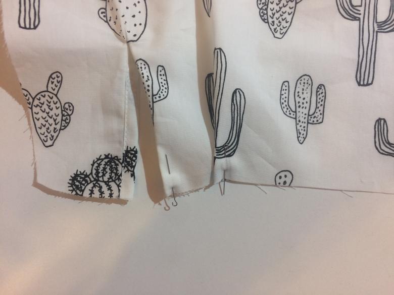- Fixez le motif sur le tissu avec des épingles à coudre ;