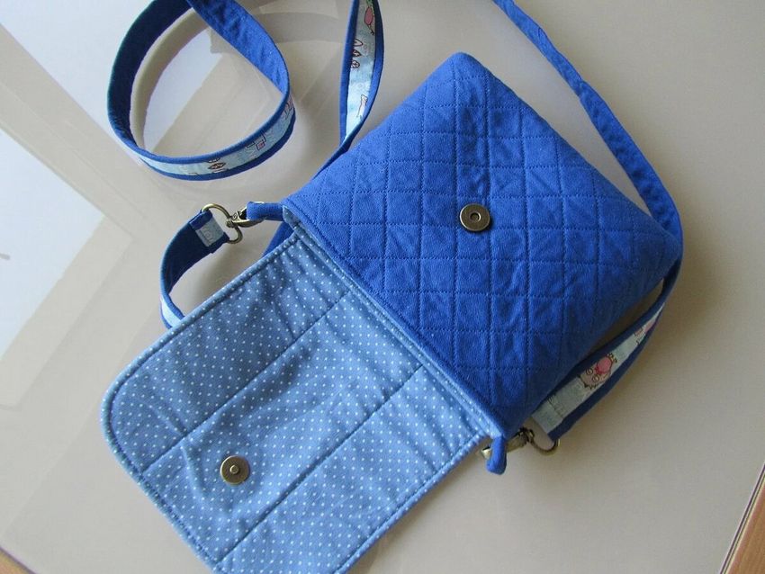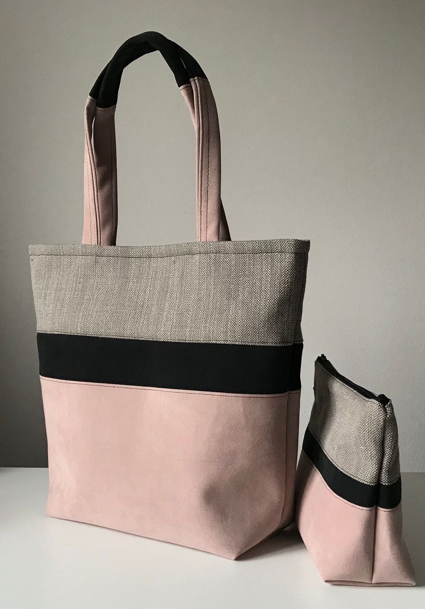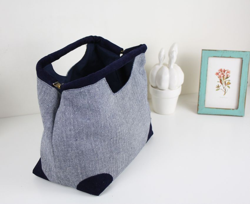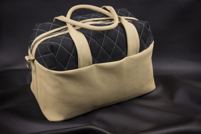 - Posez 2 cm du bord supérieur de la pièce vers l'intérieur, insérez le bord de la doublure, la boucle pour la maintenir en place et les poignées, cousez le tout ;