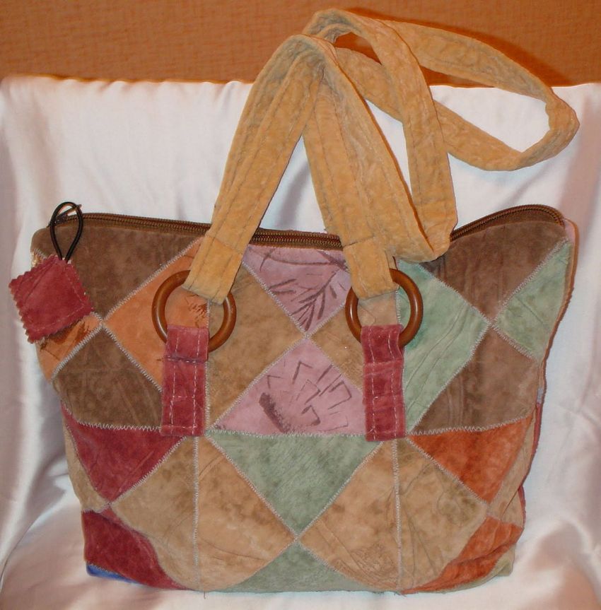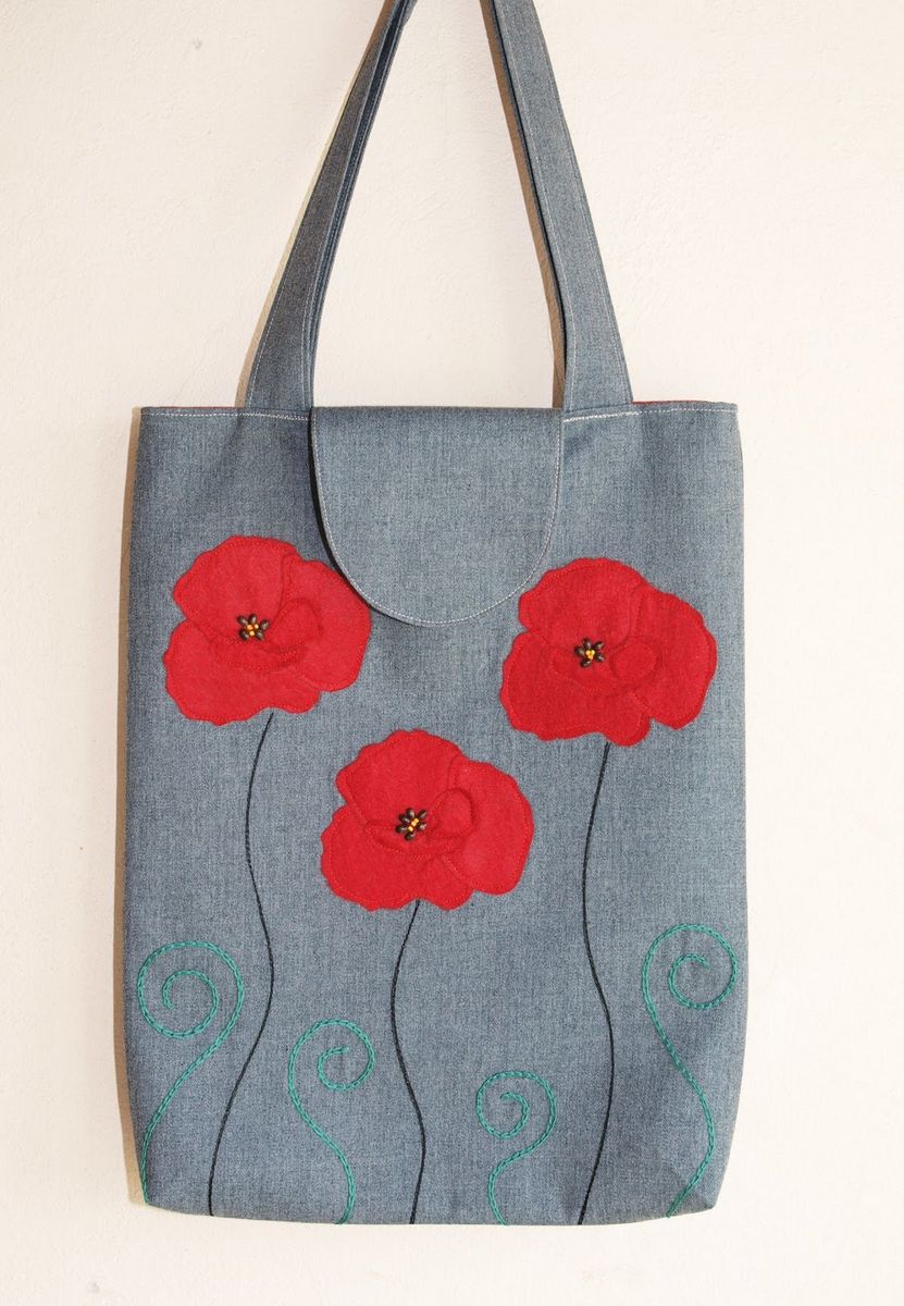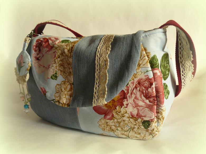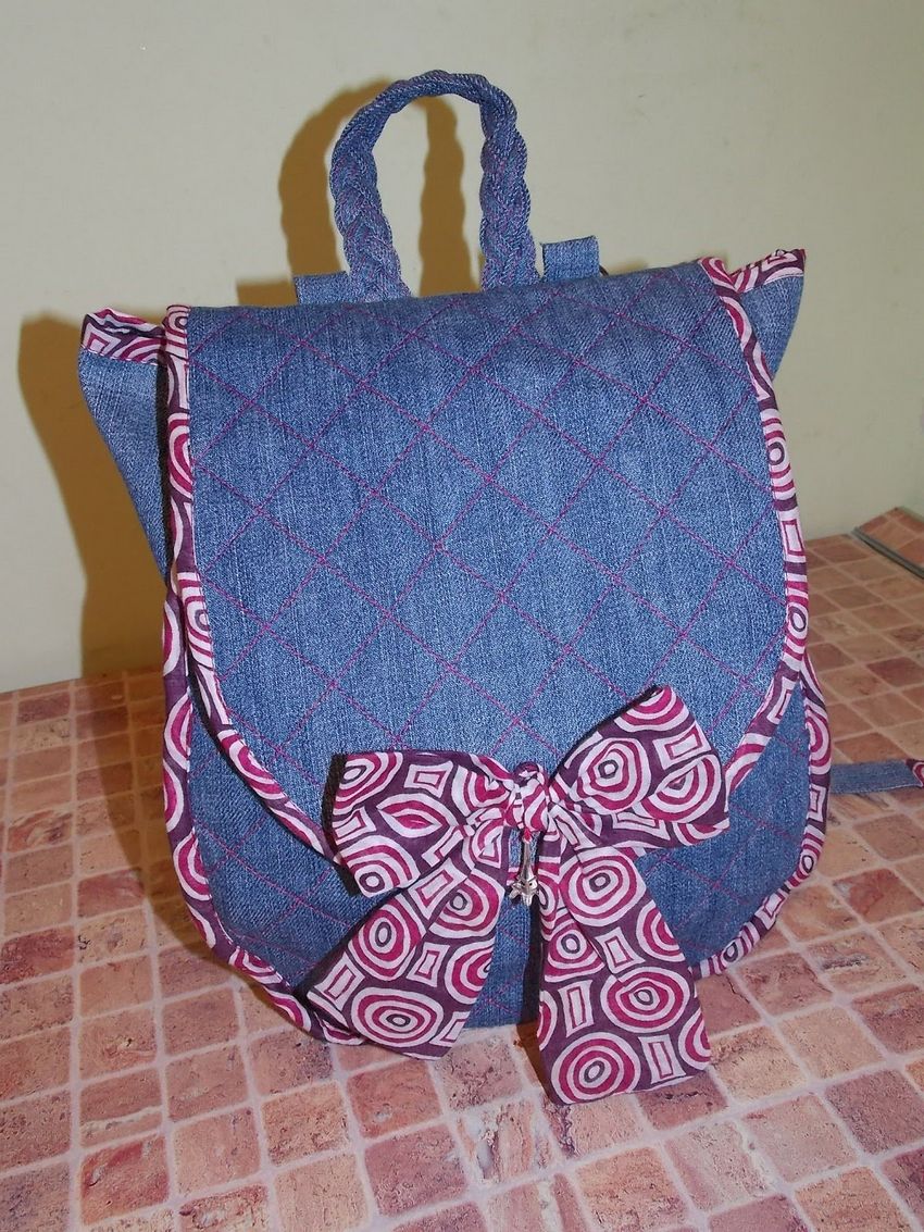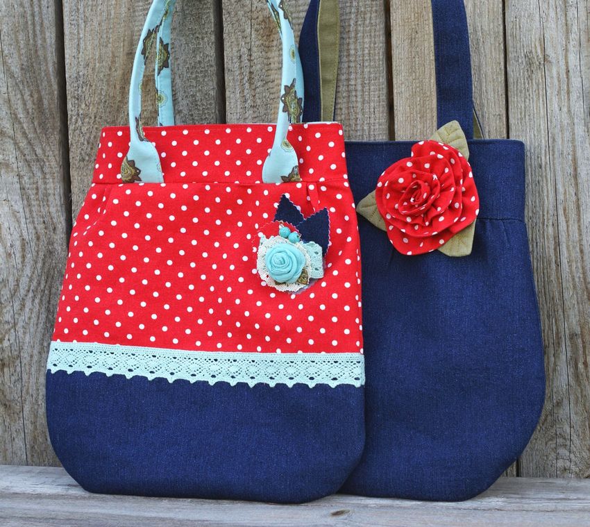 Un motif très simple. On peut l'utiliser pour fabriquer un sac chic à partir de vieux jeans (ou même de quelques-uns). Pour ce faire, des morceaux de différents jeans sont cousus ensemble pour former une toile, et le sac est déjà découpé dessus. Cette version n'est pas conçue pour faire des courses et doit être équipée d'une fermeture éclair. Pour ce faire, vous devrez augmenter les marges de couture sur les côtés. Ces mêmes sacs peuvent également être cousus à partir de vieux chiffons ou vous pouvez utiliser des éléments de vêtement (par exemple, des poches) pour la décoration.