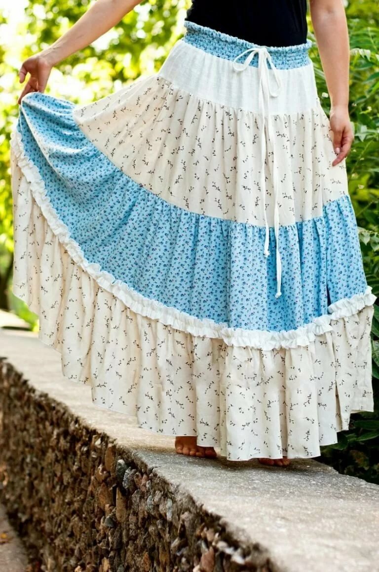 - Les jupes longues doivent de préférence être réalisées dans des tissus légers.